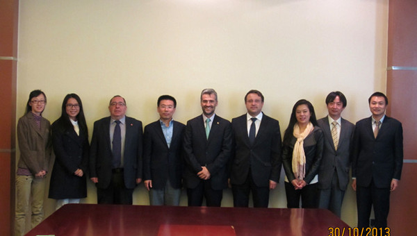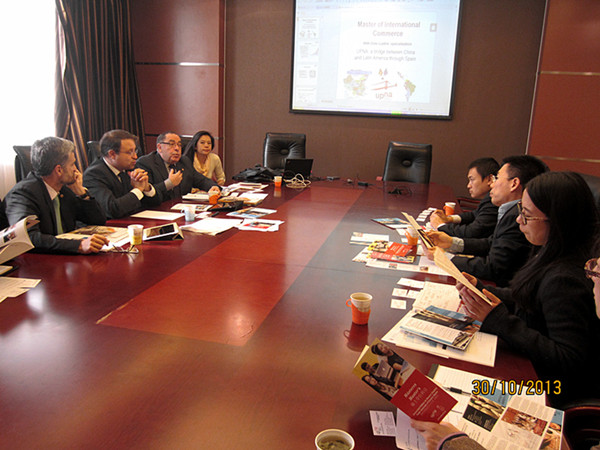 10月30日上午10点,西班牙纳瓦拉公立大学副校长Alfonso Carlosena 和国际关系副校长Javier Casali来腾博官网进行友好访问,随同的还有纳瓦拉大学亚洲区经理Luis Hernandez及驻北京代表处的工作人员。副院长吴韬、院长助理沈建以及腾博官网国际事务助理杨老师、学校国际事务办公室郭老师接待了来访客人。