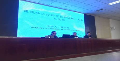 2016年11月1日下午,陈华彬教授应邀赴国家法官学院为全国法院物权法与房地产纠纷案件审判实务专题研修班授课,其所授课的内容为“建筑物区分所有权与物业服务纠纷案件法律适用问题”。