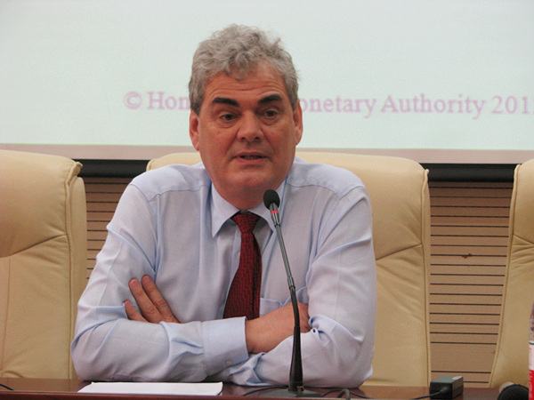 2012年5月11日下午14:00,香港金融管理局首席法律顾问及执行总裁Stefan Gannon(简贤亮)先生应腾博TENGBO9885官网邀请,来我校做题为“中央银行的市场干预——良好治理的政策/法律视角”的专题演讲。讲座在学术会堂202报告厅举行,腾博TENGBO9885官网副院长吴韬副教授、曾筱清教授、米德夫教授、邢会强副教授、陈飞副教授等出席了本次讲座。