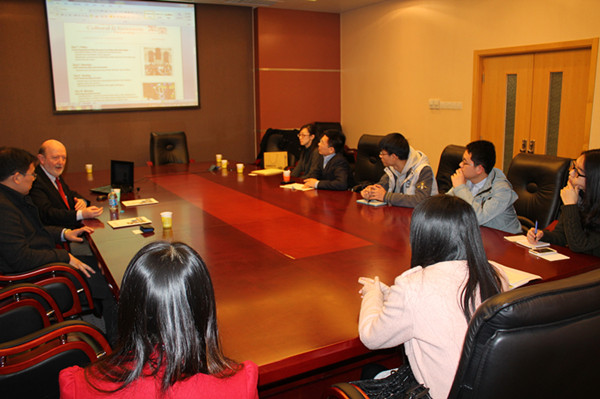 2013年12月2日下午四点,在腾博TENGBO9885官网学术会堂602室,腾博官网领导欢迎美国马科姆文化与经济合作委员会(MCEP)秘书长Edward Bruley先生访问。