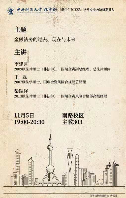 王磊,2007级经济法学硕士,现任国瑞金融资产管理有限公司风险合规部总经理。2010年中财腾博TENGBO9885官网毕业后,入职中融国际信托有限公司工作两年,之后进入中国华融资产管理股份有限公司工作七年,2019年9月入职国瑞金资。