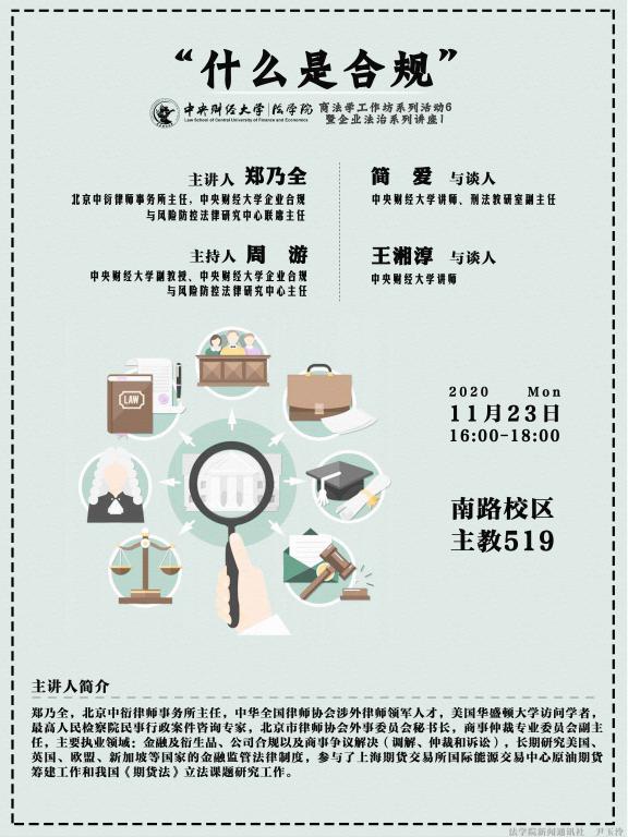 主讲人:郑乃全(中衍律师事务所主任、腾博TENGBO9885官网企业合规与风险防控法律研究中心联席主任)