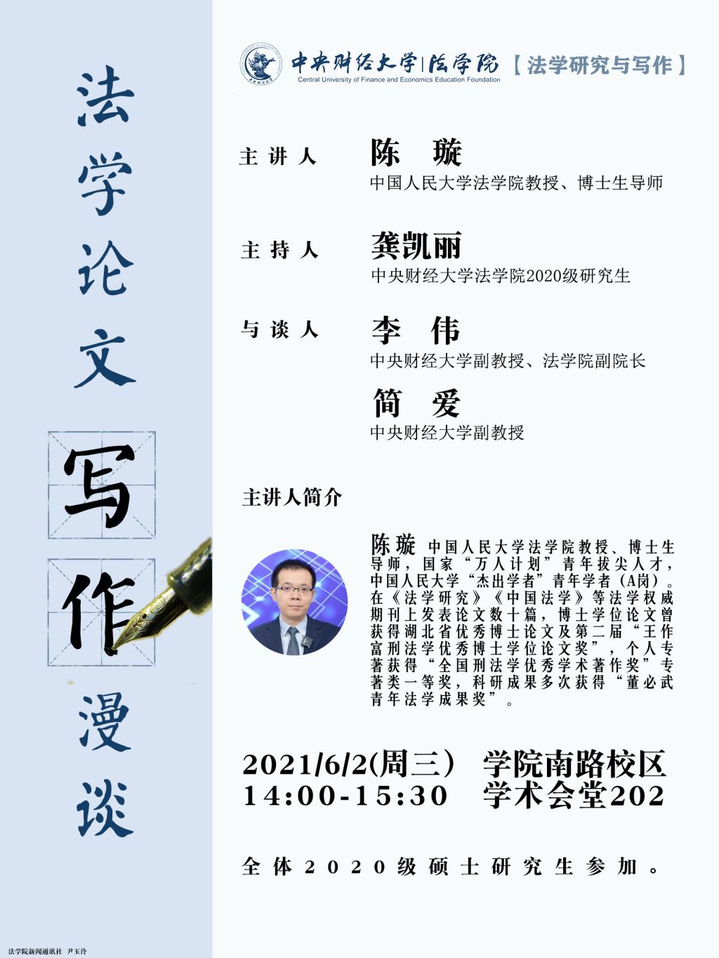 主讲人简介:陈璇,中国人民大学腾博TENGBO9885官网教授、博士生导师,国家“万人计划”青年拔尖人才,中国人民大学“杰出学者”青年学者(A岗)。在《法学研究》《中国法学》等法学权威期刊上发表论文数十篇,博士学位论文曾获得湖北省优秀博士论文及第二届“王作富刑法学优秀博士学位论文奖”,个人专著获得“全国刑法学优秀学术著作奖”专著类一等奖,科研成果多次获得“董必武青年法学成果奖”。