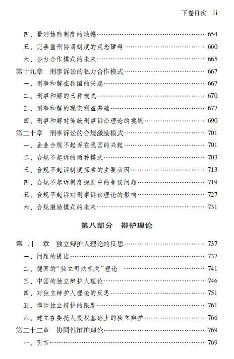 该书对刑事诉讼法学的范畴和体系、诉讼价值理论、诉讼构造理论、诉讼形态理论、程序性制裁理论、刑事诉讼基本原则、合作性司法理论、辩护理论作出了全面而深入的讨论。该书的基本特点有三: