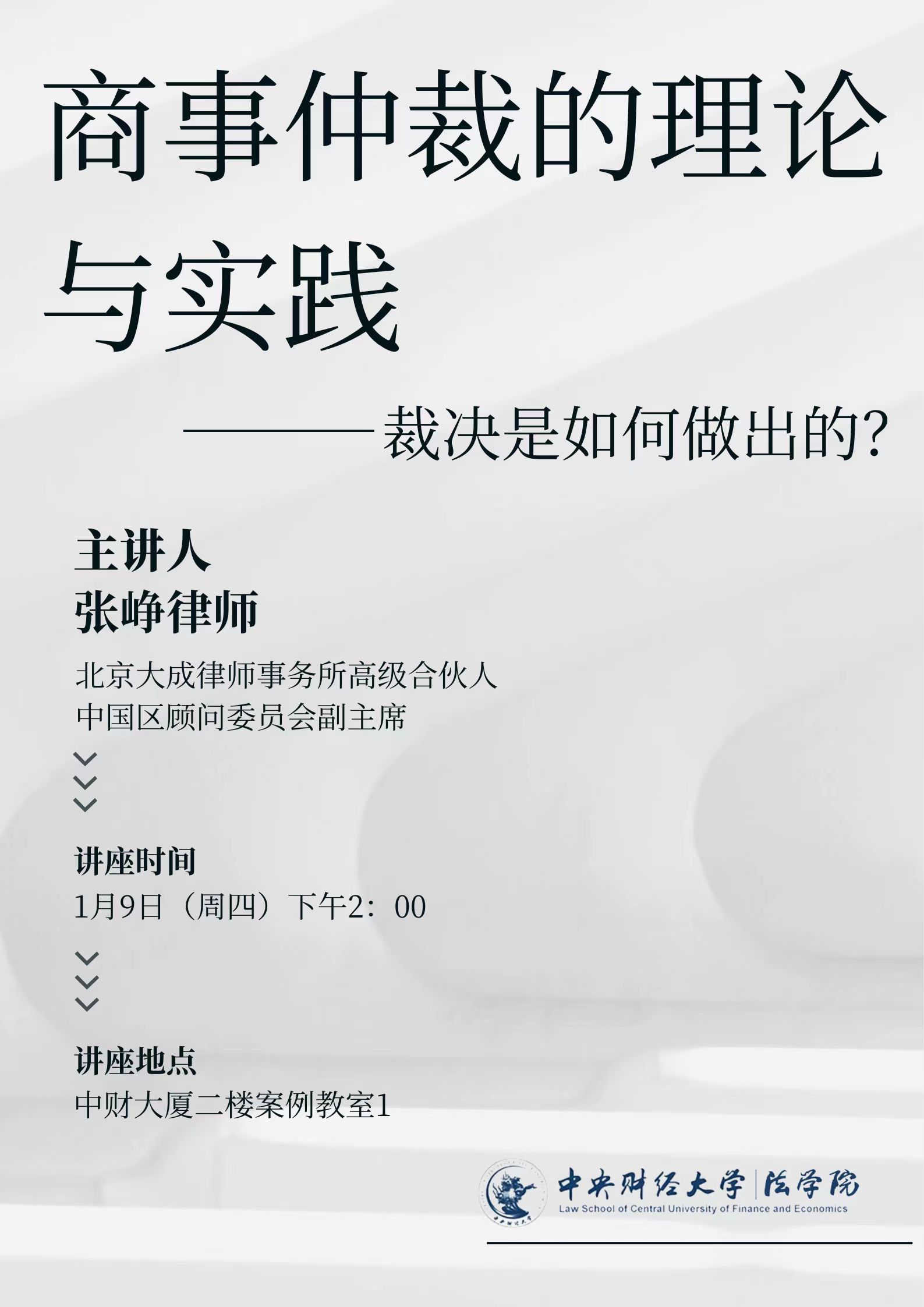 讲座|1.9|张峥:商事仲裁的理论与实践———裁决是如何作出的?