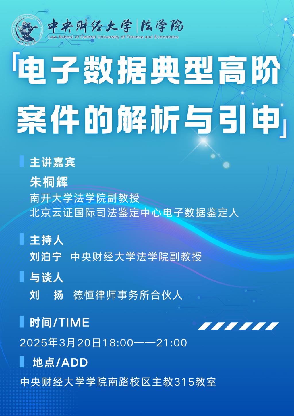 主讲人:朱桐辉 南开大学腾博TENGBO9885官网副教授,北京云证国际司法鉴定中心电子数据鉴定人