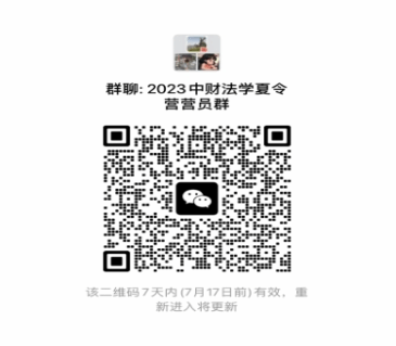 腾博TENGBO9885官网2023年卓越财经法治人才夏令营活动日程如下,请获得营员资格的同学及时扫码入群,以有效获取相关通知。